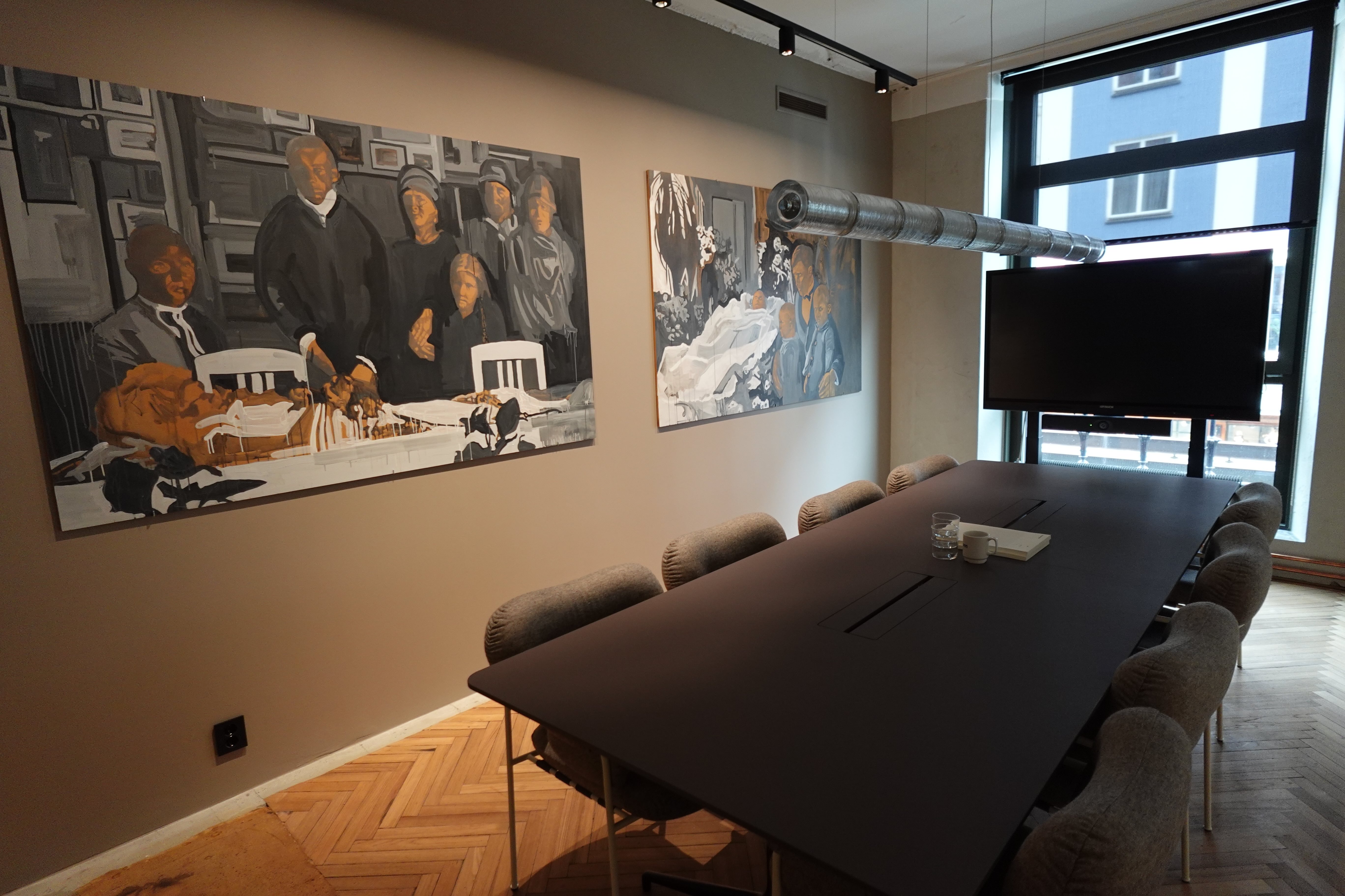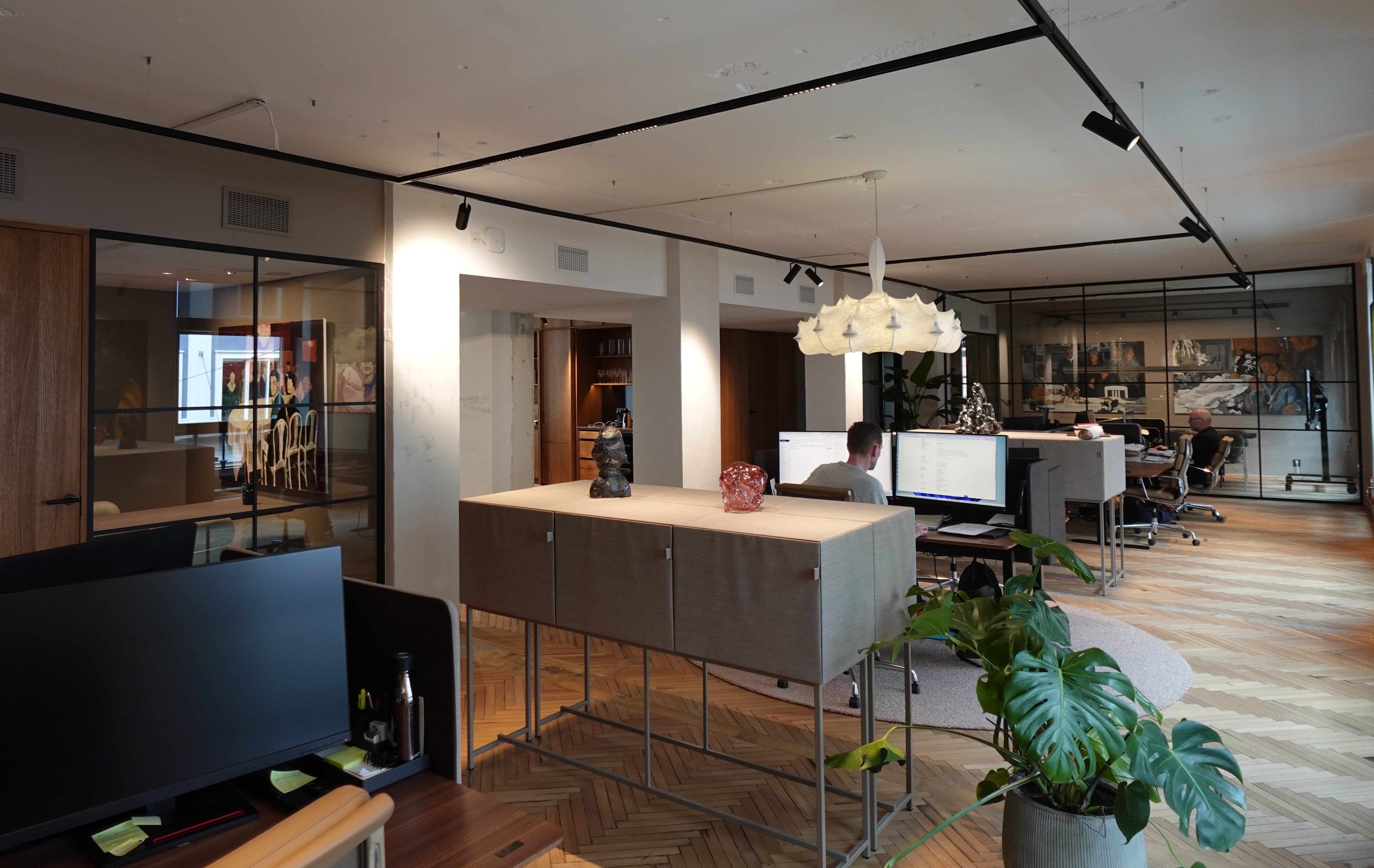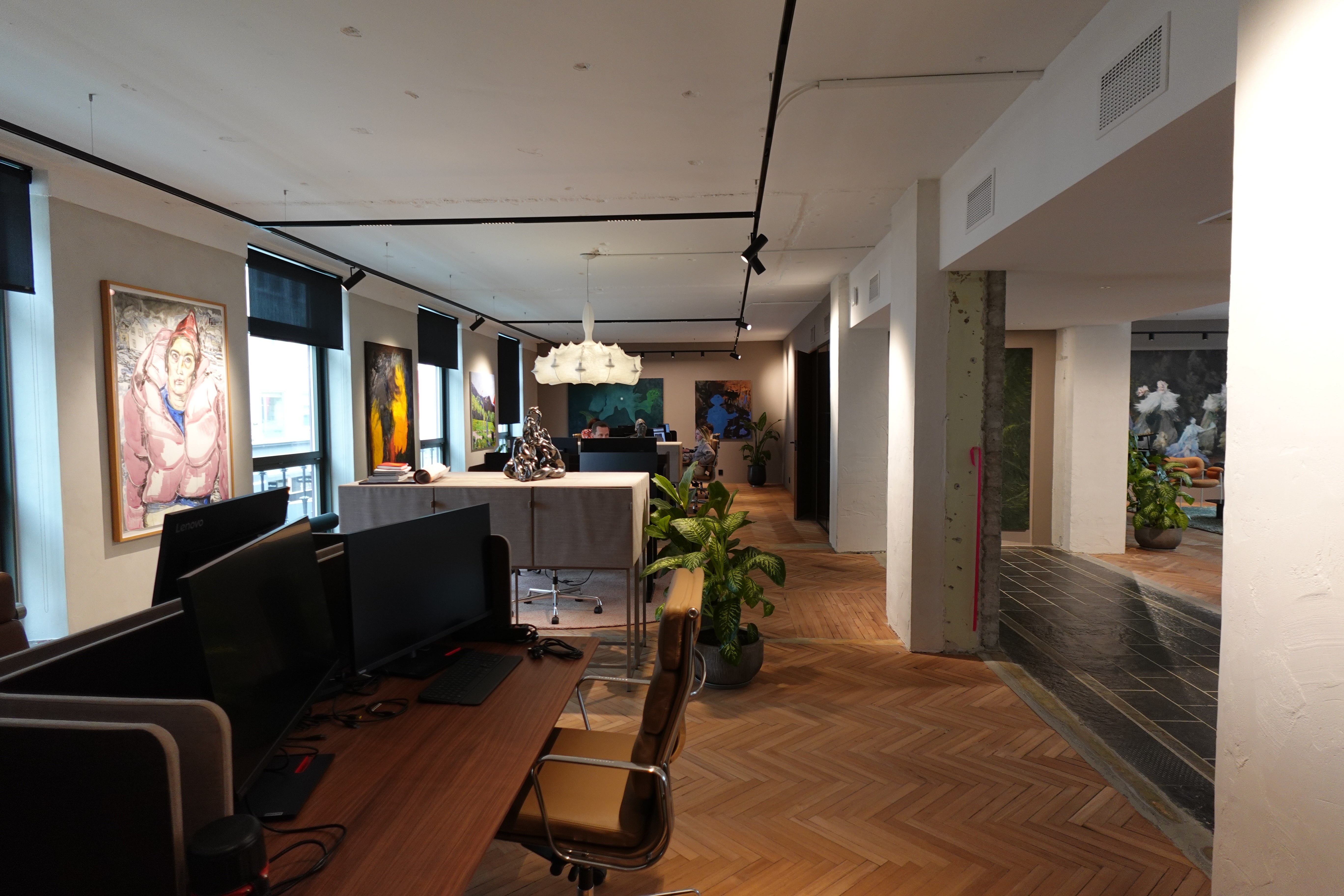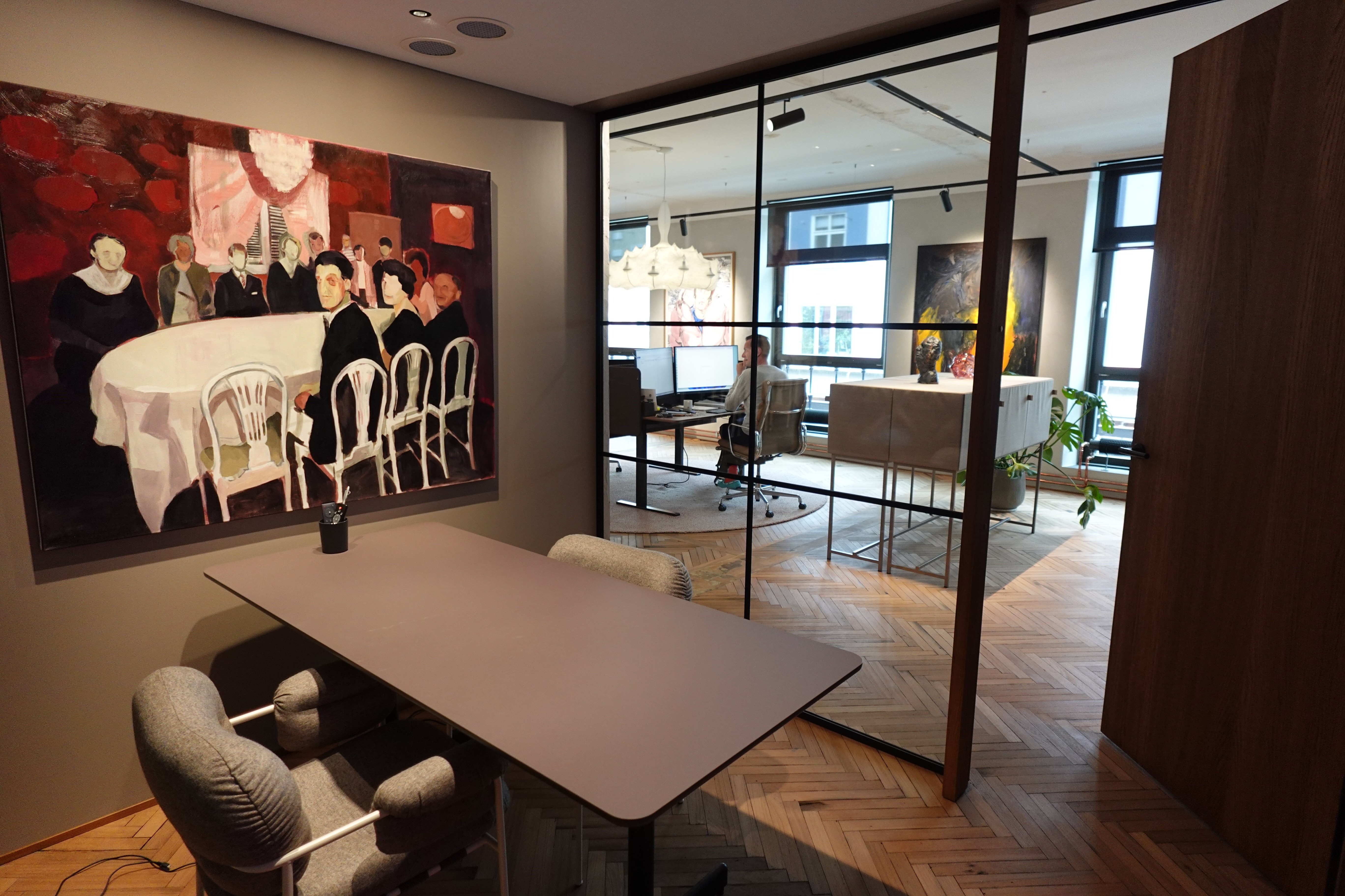 Lokalene våre er innredet for at folk skal elske å være her! Veggene er dekket med kunst, og når flygelet ikke er i bruk, fylles rommene med behagelig jazz fra høyttalerne. (Hva som er behagelig jazz hersker det riktignok en viss intern uenighet om.)
